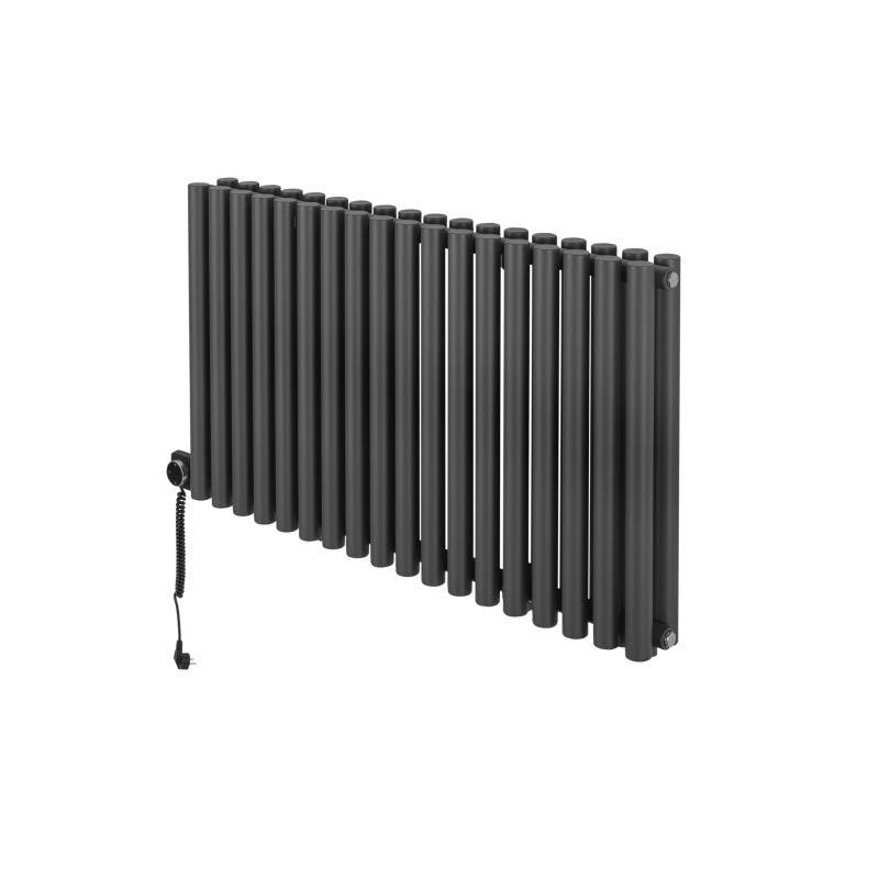 Grzejnik dekoracyjny elektryczny Gilda 600x1062 grafit to elegancki model wyposażony w podwójny rząd pionowych, okrągłych rur, zapewnia wysoką moc grzewczą i równomierne rozprowadzanie ciepła. Nowoczesny design w stylowym graficie doskonale komponuje się z wnętrzami loftowymi i industrialnymi. Nie potrzebuje dostępu do CO, wystarczy gniazdko elektryczne, by cieszyć się odpowiednią temperaturą bez względu na porę roku, a dzięki grzałce SQUARE możesz wygodnie ustawić grzanie zarówno będąc w domu jak i na odległość, gdyż grzałka posiada podłączenie Wi-Fi. Niewielka wysokość grzejnika sprawia, że idealnie nadaje się on pod okna.
