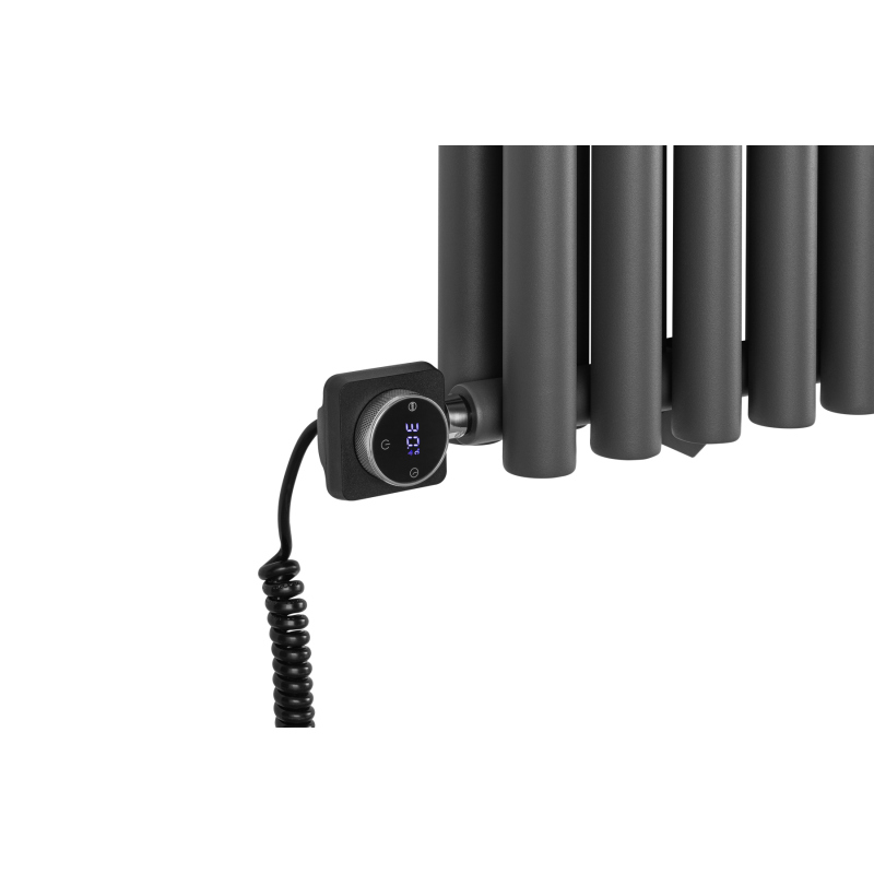 Grzejnik dekoracyjny elektryczny Gilda 600x1062 grafit to elegancki model wyposażony w podwójny rząd pionowych, okrągłych rur, zapewnia wysoką moc grzewczą i równomierne rozprowadzanie ciepła. Nowoczesny design w stylowym graficie doskonale komponuje się z wnętrzami loftowymi i industrialnymi. Nie potrzebuje dostępu do CO, wystarczy gniazdko elektryczne, by cieszyć się odpowiednią temperaturą bez względu na porę roku, a dzięki grzałce SQUARE możesz wygodnie ustawić grzanie zarówno będąc w domu jak i na odległość, gdyż grzałka posiada podłączenie Wi-Fi. Niewielka wysokość grzejnika sprawia, że idealnie nadaje się on pod okna.