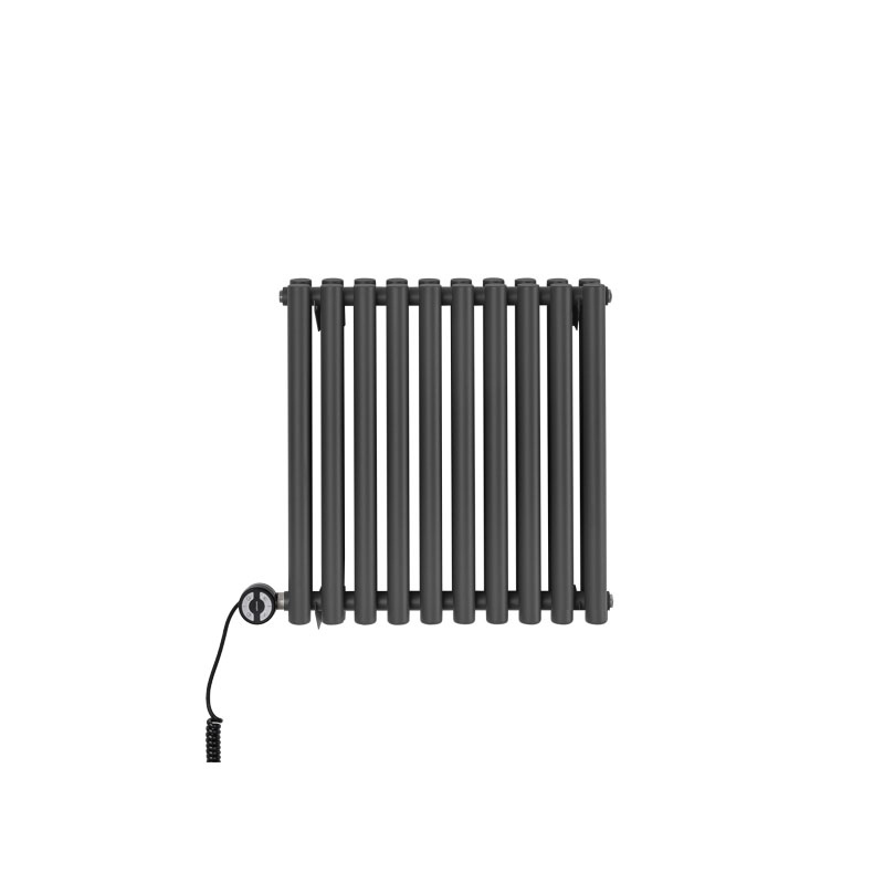 Grzejnik dekoracyjny elektryczny Gilda 600x590 grafit to elegancki model wyposażony w podwójny rząd pionowych, okrągłych rur, zapewnia wysoką moc grzewczą i równomierne rozprowadzanie ciepła. Nowoczesny design w stylowym graficie doskonale komponuje się z wnętrzami loftowymi i industrialnymi. Nie potrzebuje dostępu do CO, wystarczy gniazdko elektryczne, by cieszyć się odpowiednią temperaturą bez względu na porę roku. Niewielka wysokość sprawia, że idealnie nadaje się pod okna.