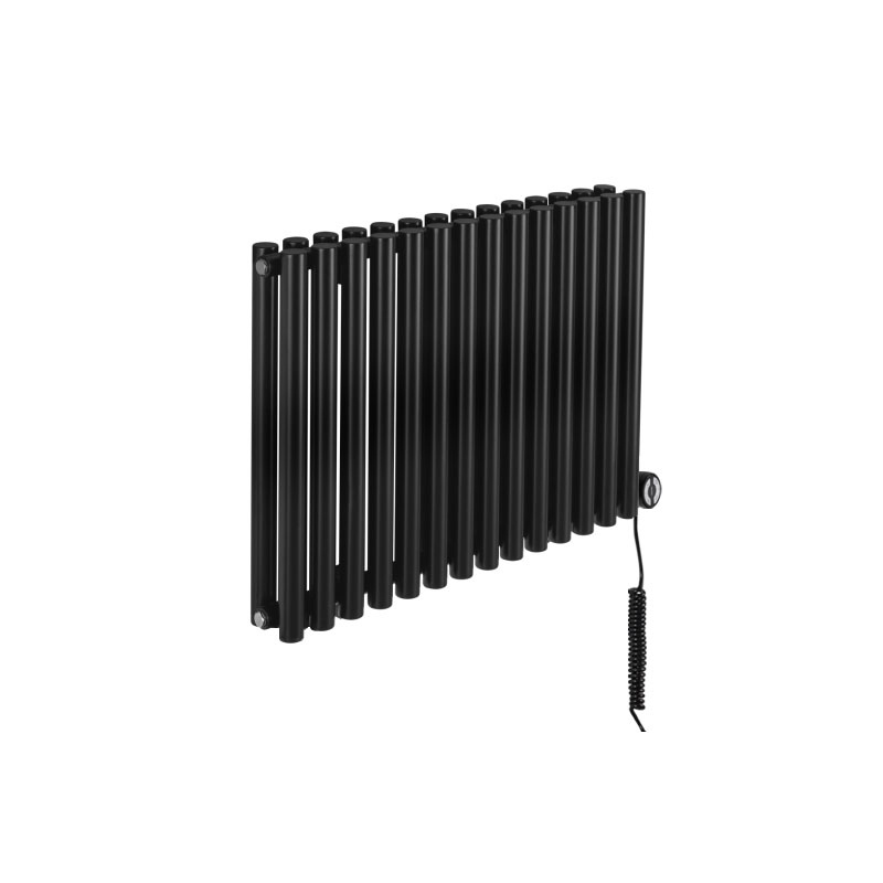 Grzejnik dekoracyjny elektryczny poziomy Gilda 600x826 czarny, grzałka z prawej strony