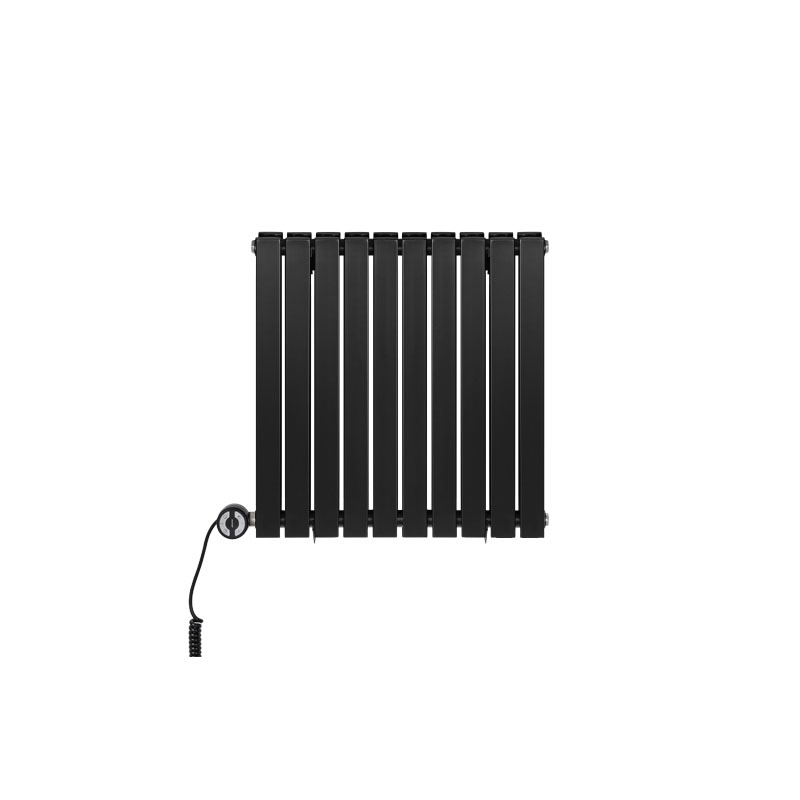 Grzejnik dekoracyjny elektryczny Judy 600x590 czarny to nowoczesny model wyposażony w podwójny rząd pionowych, płaskich paneli w kolorze matowej czerni, gwarantuje wysoką moc grzewczą i szybkie oddawanie ciepła. Elegancki design sprawia, że doskonale komponuje się z wnętrzami nowoczesnymi i minimalistycznymi. Nie potrzebuje dostępu do CO, wystarczy gniazdko elektryczne, by cieszyć się odpowiednią temperaturą bez względu na porę roku. Niewielka wysokość sprawia, że idealnie nadaje się do małych pomieszczeń oraz pod okna w większych pokojach.