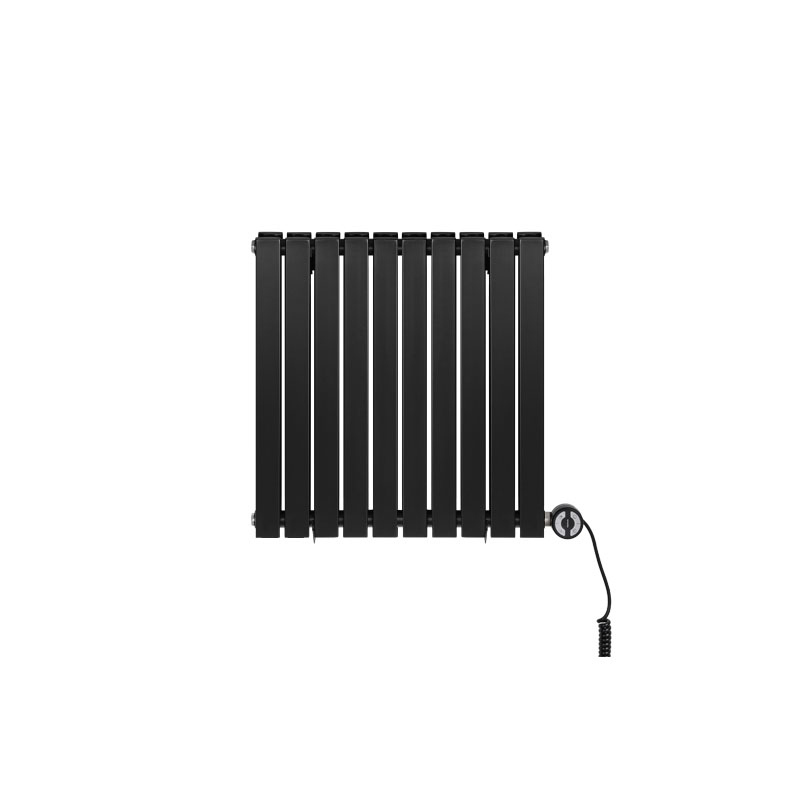 Grzejnik dekoracyjny elektryczny Judy 600x590 czarny to nowoczesny model wyposażony w podwójny rząd pionowych, płaskich paneli w kolorze matowej czerni, gwarantuje wysoką moc grzewczą i szybkie oddawanie ciepła. Elegancki design sprawia, że doskonale komponuje się z wnętrzami nowoczesnymi i minimalistycznymi. Nie potrzebuje dostępu do CO, wystarczy gniazdko elektryczne, by cieszyć się odpowiednią temperaturą bez względu na porę roku. Niewielka wysokość sprawia, że idealnie nadaje się do małych pomieszczeń oraz pod okna w większych pokojach.