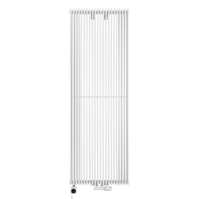Podkreśl styl wnętrza pionowym grzejnikiem Edo ED2E 1800x620. Jego smukła, kolumnowa forma i śnieżnobiały kolor idealnie wpisują się w estetykę minimalistyczną, skandynawską, japandi czy nowoczesną. Dwa rzędy pionowych profili o zaokrąglonym przekroju tworzą spójną, harmonijną całość, zapewniając jednocześnie znacznie wyższą wydajność grzewczą niż modele jednorzędowe. To nie tylko efektywne źródło ciepła, ale i subtelny element dekoracyjny, który optycznie wydłuży przestrzeń.