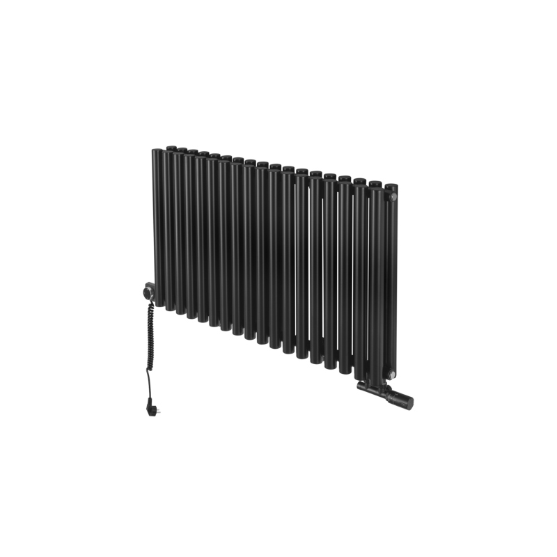 Grzejnik dekoracyjny hybrydowy Gilda 600x1062 czarny SQUARE to elegancki model łączący funkcję ogrzewania wodnego i elektrycznego. Wyposażony w podwójny rząd pionowych, okrągłych rur, zapewnia wysoką moc grzewczą i równomierne rozprowadzanie ciepła. Elegancki design w matowej czerni doskonale komponuje się z wnętrzami nowoczesnymi i minimalistycznymi. Grzałka elektryczna SQUARE dzięki połączeniu z Wi-Fi i łatwemu interfejsowi umożliwia komfortowe sterowanie temperaturą niezależnie od instalacji centralnego ogrzewania, a zawór Multiflow INVEST zapewnia najwyższą funkcjonalność i przyjemność użytkowania.