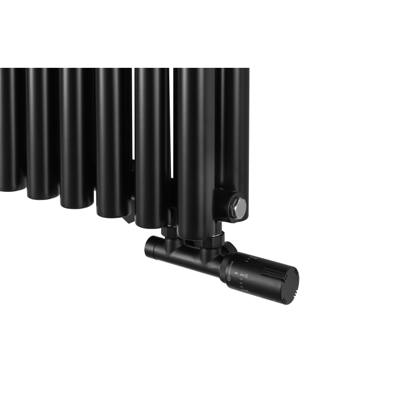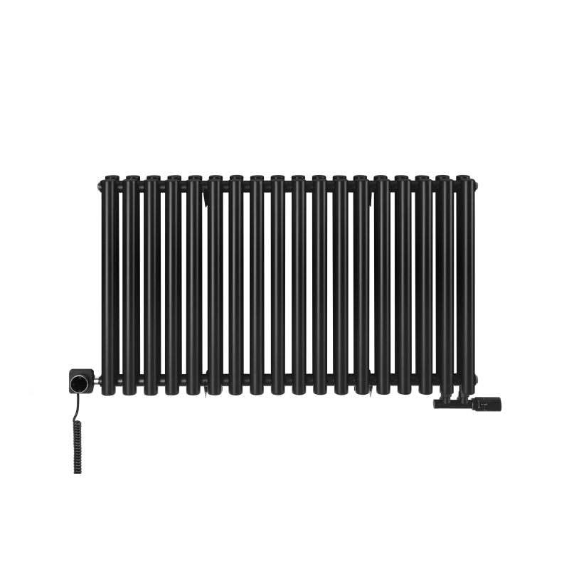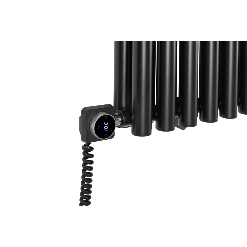 Grzejnik dekoracyjny hybrydowy Gilda 600x1062 czarny SQUARE to elegancki model łączący funkcję ogrzewania wodnego i elektrycznego. Wyposażony w podwójny rząd pionowych, okrągłych rur, zapewnia wysoką moc grzewczą i równomierne rozprowadzanie ciepła. Elegancki design w matowej czerni doskonale komponuje się z wnętrzami nowoczesnymi i minimalistycznymi. Grzałka elektryczna SQUARE dzięki połączeniu z Wi-Fi i łatwemu interfejsowi umożliwia komfortowe sterowanie temperaturą niezależnie od instalacji centralnego ogrzewania, a zawór Multiflow INVEST zapewnia najwyższą funkcjonalność i przyjemność użytkowania.