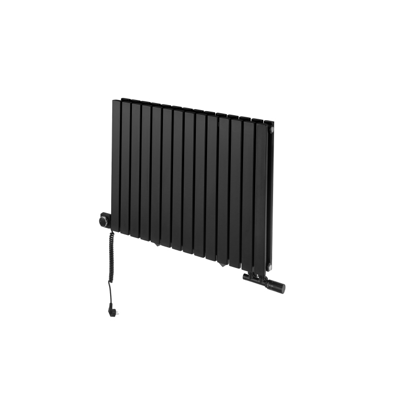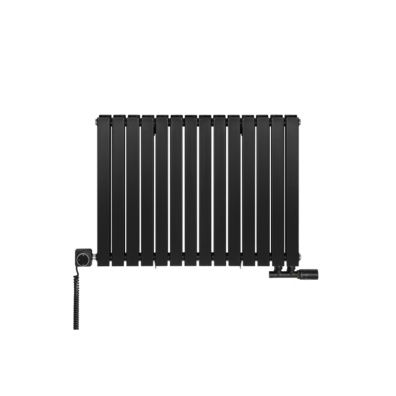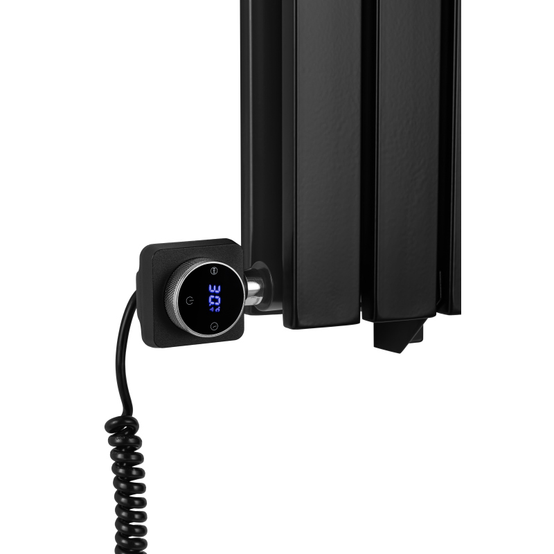 Grzejnik dekoracyjny hybrydowy Judy 600x826 czarny MOA to nowoczesny model łączący ogrzewanie wodne i elektryczne. Wyposażony w podwójny rząd pionowych, płaskich paneli w kolorze matowej czerni, gwarantuje wysoką moc grzewczą i szybkie oddawanie ciepła. Elegancki design sprawia, że doskonale komponuje się z wnętrzami nowoczesnymi i minimalistycznymi. Grzałka elektryczna MOA z funkcją Wi-Fi i intuicyjnym sterowaniem umożliwia wygodne kontrolowanie temperatury niezależnie od instalacji CO, a zawór Multiflow INVEST zapewnia pełną funkcjonalność i komfort codziennego użytkowania.