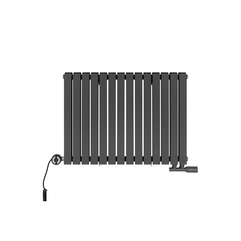 Grzejnik dekoracyjny hybrydowy Judy 600x826 grafit MOA to nowoczesny model łączący ogrzewanie wodne i elektryczne. Wyposażony w podwójny rząd pionowych, płaskich paneli w kolorze eleganckiego grafitu, gwarantuje wysoką moc grzewczą i szybkie oddawanie ciepła. Nowoczesny design sprawia, że doskonale komponuje się z wnętrzami loftowymi i industrialnymi. Grzałka elektryczna MOA z intuicyjnym sterowaniem umożliwia wygodne kontrolowanie temperatury niezależnie od instalacji CO, a zawór Multiflow INVEST zapewnia pełną funkcjonalność i komfort codziennego użytkowania.