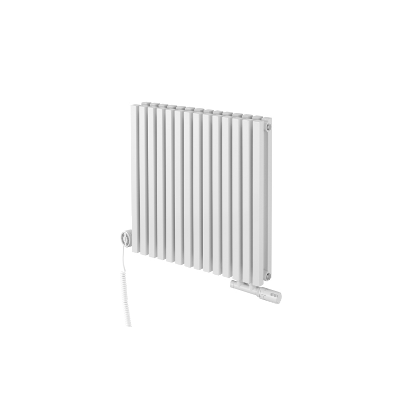 Grzejnik dekoracyjny hybrydowy Nomad 600x630 biały MOA to nowoczesne rozwiązanie łączące ogrzewanie wodne i elektryczne. Wyposażony w dwa rzędy pionowych paneli o prostokątnym przekroju zapewnia wysoką wydajność grzewczą oraz równomierne rozprowadzanie ciepła. Klasyczny design w subtelnej bieli doskonale komponuje się z wnętrzami jasnymi i w stylu skandynawskim. Grzałka elektryczna MOA dzięki łatwemu interfejsowi umożliwia komfortowe sterowanie temperaturą niezależnie od instalacji centralnego ogrzewania, a zawór Multiflow Invest sprawia, że korzystanie z grzejnika jest czystą przyjemnością!