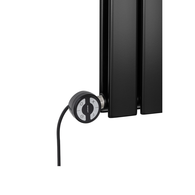 Grzejnik dekoracyjny hybrydowy Wanted 600x612 czarny MOA wyróżnia się nowoczesnym charakterem dzięki szerokim, prostokątnym, płaskim panelom ułożonym w dwóch rzędach. Matowa czerń podkreśla jego solidną formę i sprawia, że świetnie pasuje do wnętrz loftowych, nowoczesnych i brutalistycznych. Hybrydowa konstrukcja umożliwia pracę zarówno w instalacji wodnej, jak i w trybie elektrycznym, grzałka MOA z prostym w użyciu interfejsem zapewnia wygodne sterowanie temperaturą o każdej porze roku, a zawór termostatyczny Multiflow INVEST gwarantuje pełną funkcjonalność i komfort codziennego użytkowania