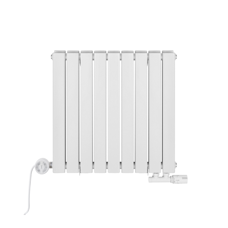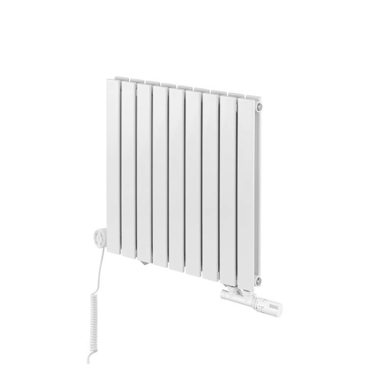 Grzejnik dekoracyjny hybrydowy Wanted 600x816 biały MOA wyróżnia się nowoczesnym charakterem dzięki szerokim, prostokątnym, płaskim panelom ułożonym w dwóch rzędach. Jasna biel podkreśla jego solidną formę i sprawia, że świetnie pasuje do wnętrz skandynawskich, śródziemnomorskich i japandi. Hybrydowa konstrukcja umożliwia pracę zarówno w instalacji wodnej, jak i w trybie elektrycznym, grzałka Moa z prostym w użyciu interfejsem zapewnia wygodne sterowanie temperaturą o każdej porze roku, a zawór termostatyczny Multiflow INVEST gwarantuje pełną funkcjonalność i komfort codziennego użytkowania