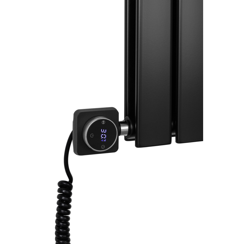 Grzejnik dekoracyjny Wanted WD2E 600x1020 w kolorze czarnym to idealne połączenie stylu i funkcjonalności w kompaktowej, poziomej formie. Podwójny rząd smukłych paneli nadaje mu nowoczesny charakter, a elegancka, czarna powłoka dodaje wnętrzu głębi i podkreśla jego wyjątkowy styl. Dzięki niskiemu profilowi doskonale mieści się pod oknami lub w pokojach o ograniczonej wysokości, zapewniając optymalny obieg ciepła i komfort w całym pomieszczeniu. Podłączenie dolne D50 z możliwością wyboru strony – lewej lub prawej – ułatwia dopasowanie do istniejącej instalacji. Grzejnik może pracować jako wodny, hybrydowy lub elektryczny, co zapewnia dużą elastyczność montażu i użytkowania. Grzejnik Wanted to inwestycja w ciepło, wygodę i ponadczasowy wygląd Twojego domu.