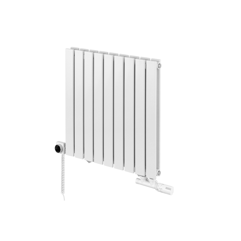 Grzejnik dekoracyjny Wanted WD2E 600x612 w kolorze białym to kompaktowe i eleganckie rozwiązanie w poziomej formie. Podwójny rząd smukłych paneli nadaje mu nowoczesny wygląd, a gładka, biała powłoka rozjaśnia wnętrze i nadaje mu wrażenie lekkości. Niewielka szerokość sprawia, że model ten idealnie pasuje w miejsca o ograniczonej przestrzeni montażowej, zachowując wysoką moc grzewczą. Niski profil pozwala na montaż pod oknami lub w miejscach o ograniczonej wysokości, gwarantując optymalny obieg ciepła. Podłączenie dolne D50 z możliwością wyboru strony – lewej lub prawej – ułatwia dopasowanie do instalacji. Grzejnik może pracować w systemie wodnym, hybrydowym lub elektrycznym, oferując pełną elastyczność montażu i użytkowania.