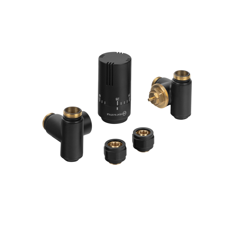 Zestaw składa się z dwóch trójników zintegrowanych z zaworami (termostatycznym i powrotnym).